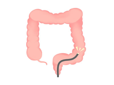 大腸カメラ検査では肛門から内視鏡を挿入し、大腸の炎症、ポリープ、がん、潰瘍などの病変を調べます。